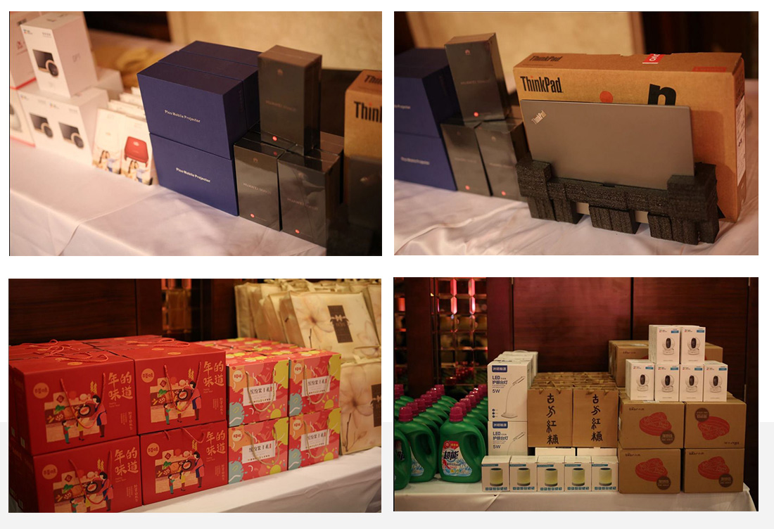 晚會(huì)設(shè)置了中獎(jiǎng)率100%的四輪抽獎(jiǎng),將現(xiàn)場氛圍推向了高潮,聯(lián)想Thinkpad、華為手機(jī)mate20、西門子洗碗機(jī)、手機(jī)家用投影儀、阿爾法蛋智能機(jī)器人等等獎(jiǎng)品紛呈。